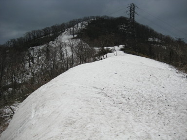 雪に埋まった三国権現の鳥居(写真左)と、三国山頂上まで続く道(写真右)。残雪が凄いです…!