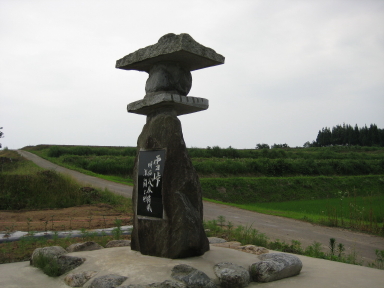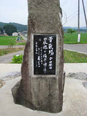 雪峠に建てられた碑。側面に、「昔戦場 今農場」とあります。
