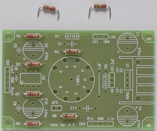 プレート抵抗(R1, R5)以外は抵抗値もシルク印刷されてます。
