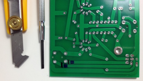 押し込みにくい場合には、基板上に半田付けした抵抗の脚をヤスリで削ってならして下さい。