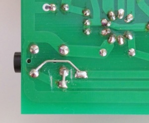ケースの底面は、基板の半田面に半田付けした抵抗の脚と接触する部分をヤスリで削り、基板のGNDとケースが電気的に導通するようにして下さい。