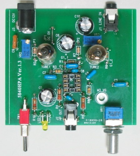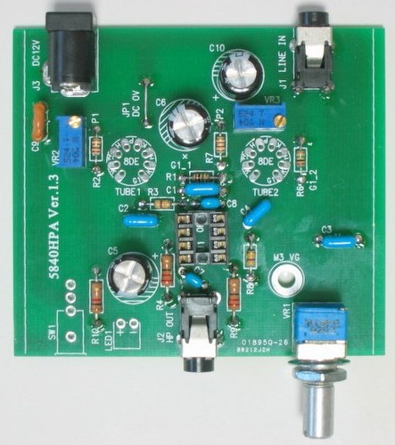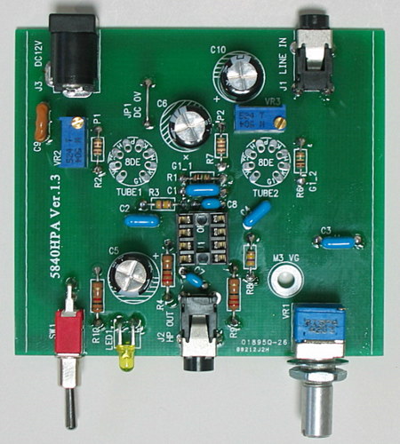 電圧増幅に用いる真空管5840は小指サイズの小さな軍事用のサブミニチュア管で、スタジオ用のマイクアンプにも使われています。
