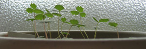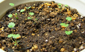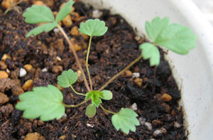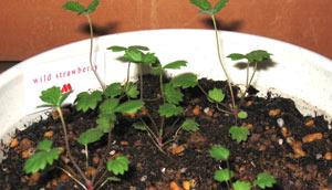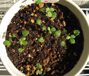 もともと、ワイルドストロベリーは配る予定で、間引きの必要はなく、今までのを含めて合計5つの鉢に、分けて植える予定でした。