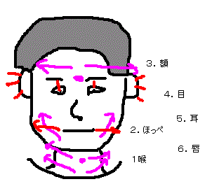 両手の小指を清め口の両角に入れてゆっくり左右に引っ張る2,30回。