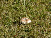 庭にキノコが生えていた。 しかも、5つ6つと、結構たくさん。 さすがに食べられそうにはないけど、しいたけそっくり・・・。 |