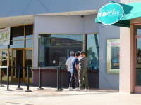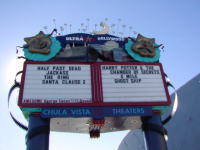 アメリカは平日だったからか、人が少なかった。すかすか。 それでもメキシコが祝日で、普段よりは人が多い方だったのだろう。 もう最初の上映時間の15分前だというのに、チケット売り場は開いていなくて、中でチケット売りのお姉さんが、朝ご飯を食べていた。 一緒ぐらいにここへ来た見知らぬおじさんが、「なんで開いてないんだ?」とか話し掛けてきたので、中でハンバーガーを食べているお姉さんを教えてあげたら、「いったいいつ開けるんだ!」と怒っていた。 ちなみに、祝祭日や平日の午後は6ドル(750円ぐらい?)。平日の朝は4ドル(500円ぐらい)。安〜い!!! |