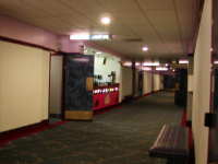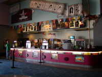 | 中には、ポップコーンや飲み物の売り場と、ちょっとしたアーケードゲームなんかが置いてある。 映画グッズは、ちょっぴりショーウインドウに飾られていたけど、どこで買うのかも分からなかった・・。アメリカ人ってあんまりパンフレットとかに興味ないのかも。 ところで、○田の映画館も同じようにポップコーンやナチョスを売っていたけど、ロビーにはふんわりポップコーンの匂いがするだけだった。 ここはキョーレツ。何の匂いだか分からない、古いてんぷら油のような匂いが、この一角にだけ立ちこめていた。 もし映画見てる間、ずっとこの匂いがするんだったら逃げようと思ったけど、この一角だけだったので、ホッとする。 |