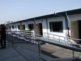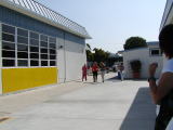 しかし、なにが驚いたと言って 最初に見た時、これが学校とは思えなかった・・・。 プレハブの、めちゃ倉庫チックな建物である。 雨が降らないし、台風も来ないし、 蛍光灯とエアコンがついていれば問題なし!と言いたげな 非常に簡単な校舎である(笑)。 |