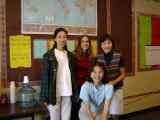 | 写真を撮らせてもらった。 (と言っても、先生の他に頼めたのが、 アジアンばかりなんだけど。) 後列真ん中が、先生。 とってもキュート&エレガントである。 |