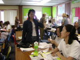 クラスのほとんどは、メキシコ出身。 教室の中には、スペイン語が飛び交う。 でも、続いて多いのは、アジア系。 日本、韓国、台湾、中国。 クラスの3割ぐらいをしめる。 どうしても、メキシカンはメキシカンで固まってしまうので こっちも負けずに、アジアンで固まる。 でも、使う言葉は英語・・・ なんとなく、納得できないような、しょうがないような。 |