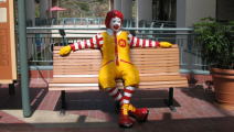 ファッションバレーの2階で、笑顔でベンチを占領するドナルド。横に座って、記念写真とれます(笑) ←注:人形です |