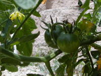 今年の夏の収穫は、トマト!どこかの不動産屋が、広告と一緒に置いていったトマトの苗から育った。 まさか、返してって言ってこないよね(笑) でも日本に帰っている間に、熟して落ちてしまいそうなタイミングだなあ・・・。 |