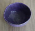 すごい色だ・・・。もちろん手びねり。5"×5"×3" 作成: 2004年1月の終わり 粘土: 白 釉薬: Lavender。下に酸化鉄で絵を描いたけど、釉薬が濃くて、消えた。 陶芸教室に寄付。 |