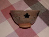 茶碗?小鉢? 作成: 2005年1月 粘土: 赤(Amador) 釉薬: Porcelain Clear こちらも、Under Graze Pencil使用。星模様。 |