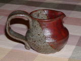水差し。 作成: 2005年5月 粘土: ピンク土(Los Altos) 釉薬: Kim's Shino くに子さんからの頂き物。大きい!きれい!素敵! 私があまりにも「うわ〜いいですね♪」を連発したのと、自分で作ったらたいしたのが出来なかった↓ために、くに子さんが哀れに思って(笑)私に譲ってくれました。でもホント素敵なのよ☆ |