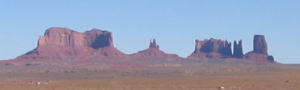 何にもない野原だの、妙な形の岩だの、それなりにおもしろい景観の野越え山越え、次第にモニュメント・バレーっぽくなっていく。 |