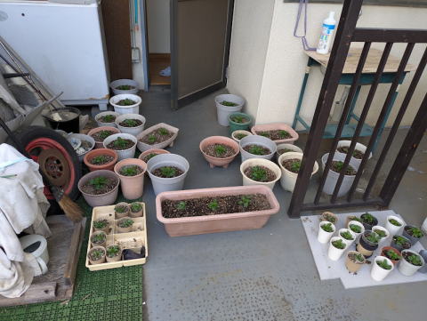 順調に育った鉢が25個ほど、まだ小さい苗が20個ほど…ってどれだけ咲かせるのって話…笑