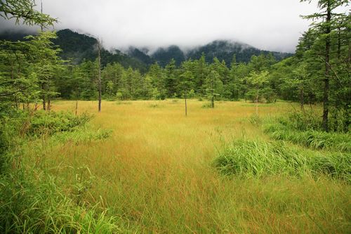平湯から大正池まで25分 ここでバスから降りる 雨は降っていないが曇天で周りの山々の山頂付近は見えないが 霧が立ち込め幻想的な光景だ そんな景観を見ながら田代湿原方面へゆっくり向かう 気温は20度くらいか 短パンにTシャツ・山靴 この季節にしては観光客が少なく田代池・田代湿原付近は静か ウエストン碑から河童橋へ 白樺荘の隣でアイスクリームとコーヒー 孫二人は仲好く元気 どんどん歩く 3時30分バスターミナル出発