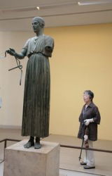 | 3日目 部屋の窓からイオニア海が見える 9時にホテルを出る 相変わらず暑い アポロンの聖域 デルフィ遺跡へ ここには 神託へのお礼の寄進の品々が今も残る 山の中腹に遺跡が広がっている 世界の中心 世界のヘソの石がある このデルフィの遺跡からの出土品を集めて展示してあるのがデルフィ博物館 昼食は ギリシァ名物のひき肉の重ね焼きの<ムサカ> 午後はメテオラ遺跡のある街 カランパカへ 早めのチェックイン コーナーの部屋からはメテオラの切り立った奇岩の 全貌が望める ここのホテルのエレベーターの扉は 手動式で小さく 二人乗ったらいっぱい 夕食後 カランパカの街を散策した 人口2000人ほどの小さな街だが メテオラ観光の拠点で活気が感じられ 異郷を感じる 天空に突き出たメテオラの頂きに建つ修道院が夕日に映え 明日はあそこに・・と思うと胸が高鳴った |