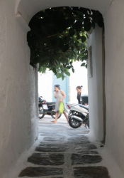 | ミコノス港のルイス・マジェスタ | カト・ミリの風車 | ミコノス港の風景 | ミコノス島の小路 |