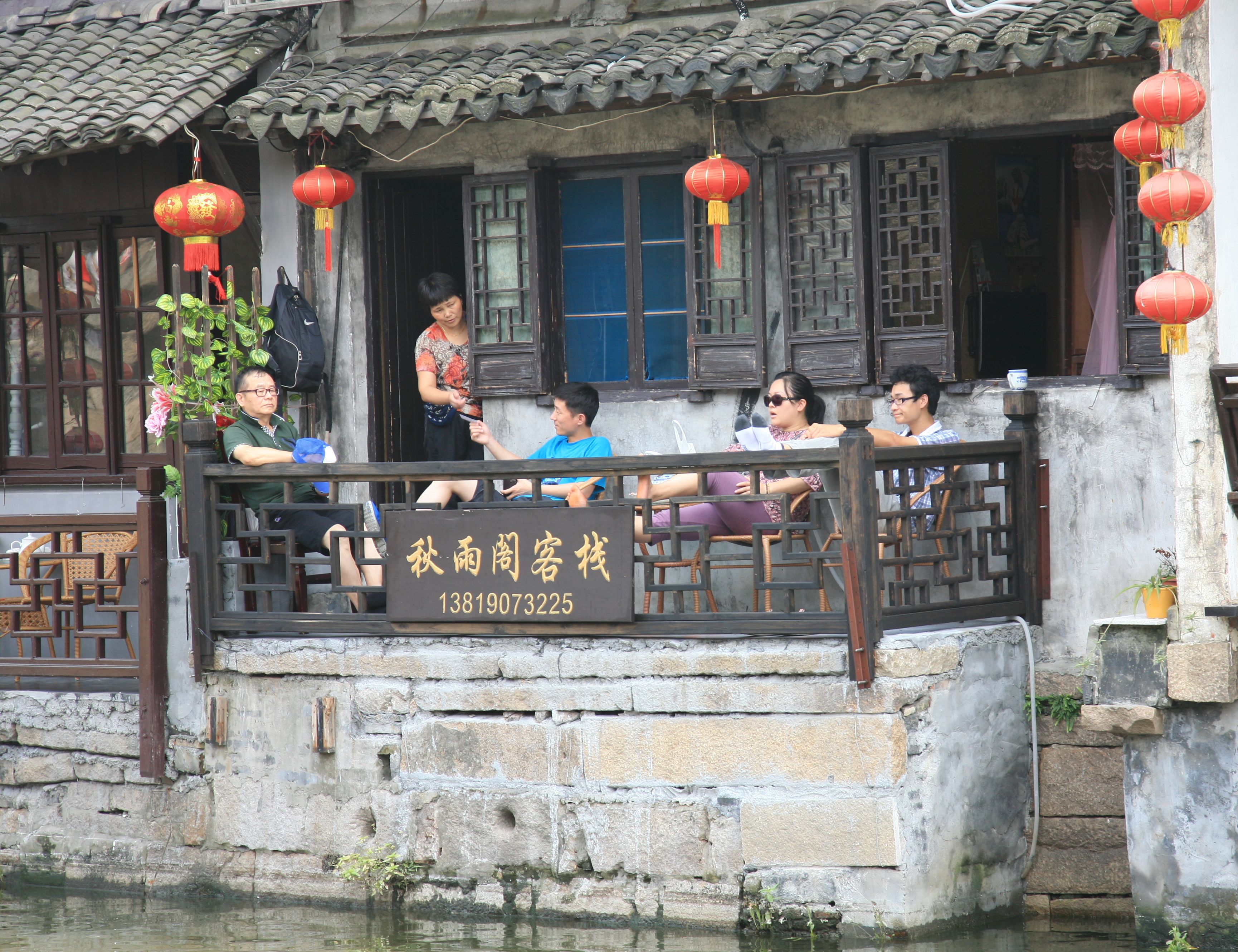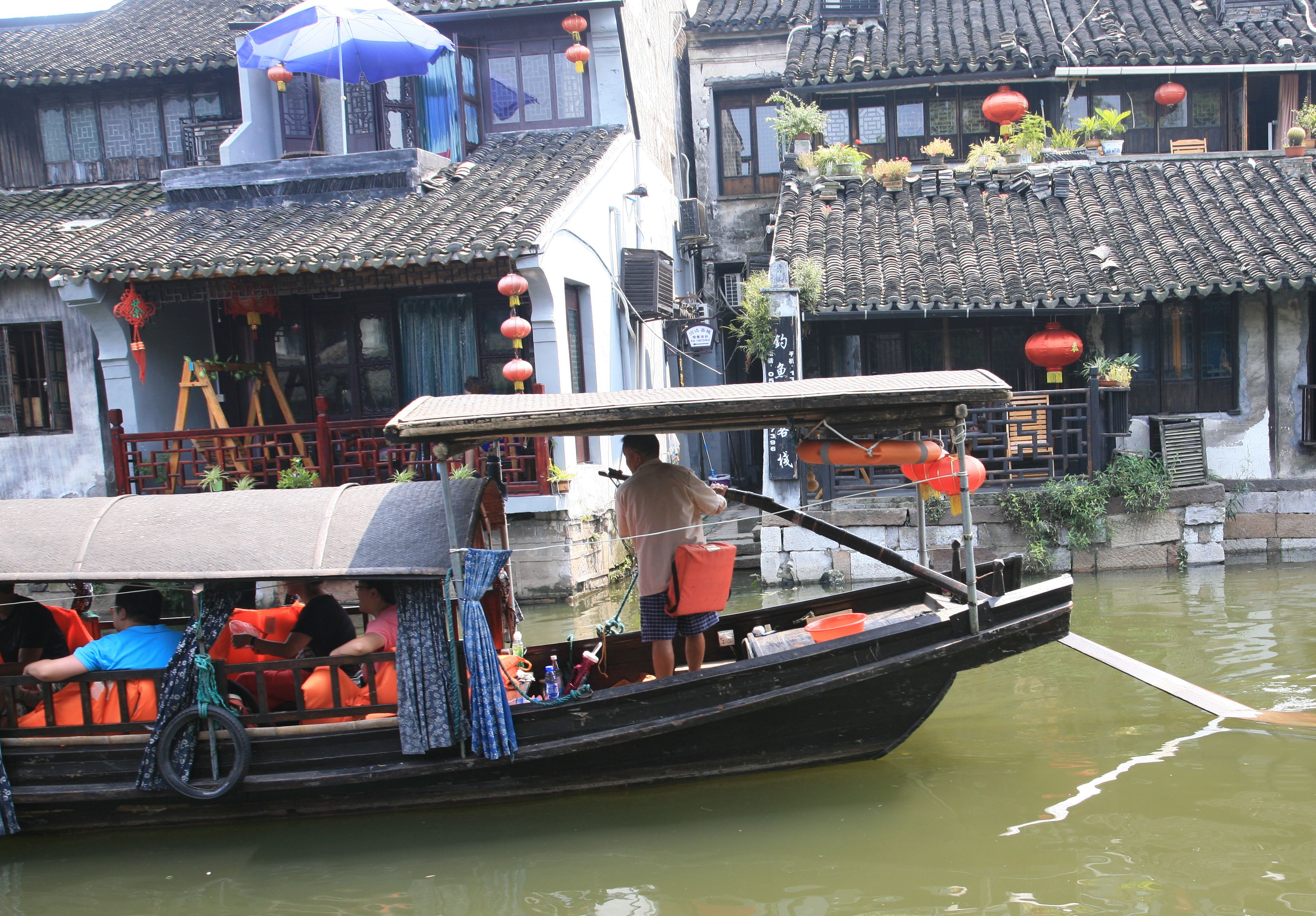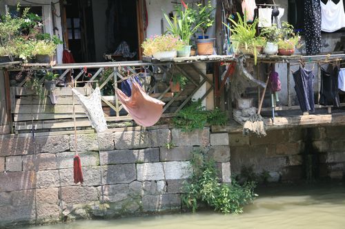 水路を挟み両岸には 昔ながらの中国の民家が立ち並んでいる その生活ぶりも垣間見ることができる