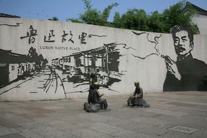 紹興酒で名高い紹興の街へ 紹興酒の看板が目立つ ここでは日本にも留学していたことがあり 狂人日記・阿Q正伝