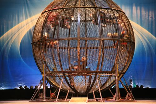 上海雑技団を見るのは三回目になる 毎回出し物は変わるが10mほどの円形のサークルに5台のオートバイが入り縦横無尽に高速で