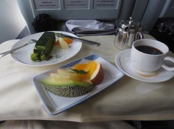 コース料理 デザートもなかなか美味 エコノミーに比べ格段に良い