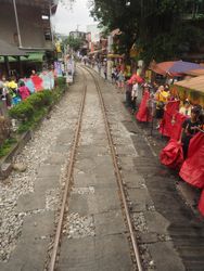 この線路沿いで天燈揚げをする人が少なめだったが あの線路沿いに人がいっぱいのダイナミックな光景は見られた