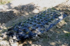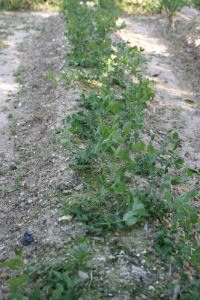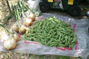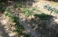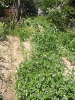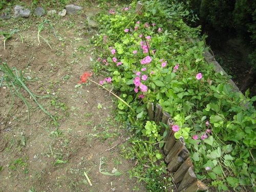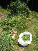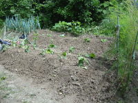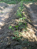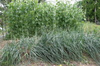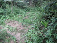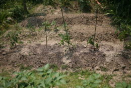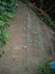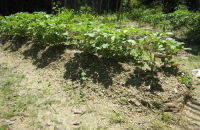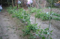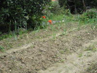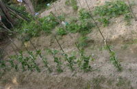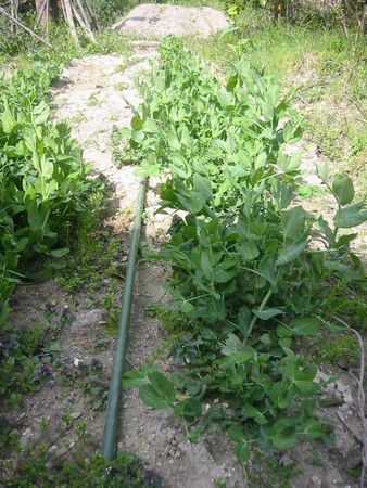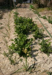 法面に家から持っていったツゲ二株を植えた タマネギの苗を50本植えた 豆類は順調に育っている |