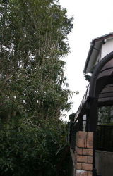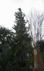 | 3月8日 樹齢約40年の松の木が枯れたので切った 隣家との境の芙蓉の木の葉が駐車場の 屋根にたまって迷惑なので一部を切った |