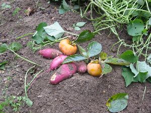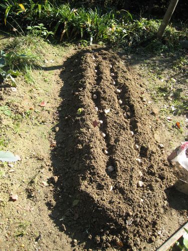 | 11月12日 蚊はもういない 小さな草がいっぱい生えている スナックエンドウ50粒とたまねぎの早生を50植えた 西にジャガイモの小粒のを約30個植えた サツマイモ二次収穫 |