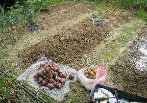 | 06 | 6 | 4 | 家の南花壇の土を総入れ替えしたので その土を持って行き 東の方へ入れた タマネギ一畝収穫 サラダにすると美味しいが大きくならない その後を耕し鶏糞を撒いた あと草とり |