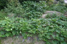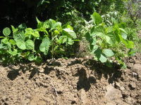 日当りのためもう一本切った | 手前サツマイモ 向こうインゲン | インゲンの花 |