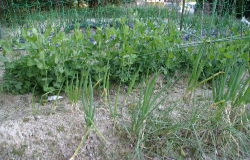 | 5月25日 農業センターで農作業ボランティアの説明会(13名参加)の帰りに寄る 樹木がすごく繁り日当たりが悪くなっている スナップエンドウ少々収穫 |