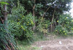 08年 12月31日 5人で甘夏数十個収穫 12月28日 ノリ面の草刈 ゆずと甘夏数個収穫 12月16日 深さ40センチの穴を掘り 底と横に油かすを入れてみかんの木を植えた 大きな実がついていたが採った |