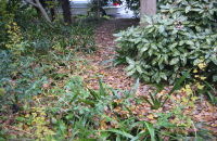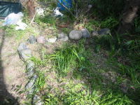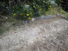 | 日当たりが悪いので剪定した | うちから持っていった石を端に並べた | 12/6のブロッコリー | 12/6のユズと甘夏 |