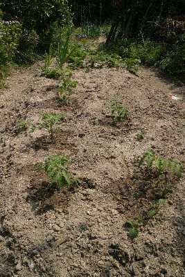 | アスパラガスの苗を植えた | 家の池畔にあったサツキを持っていく | シャガの花は盛りを迎えている | トマトを二ヶ所へ6本植えた |
