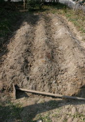 | 2月4日 午前7時から8時10分まで 小カブの跡に2 畝作り 土の改良剤を一袋混ぜ