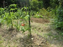 | 8月2日 畑をのぞいてミニとまと少々収穫 先日取り除いた蜂の巣のその後確認