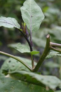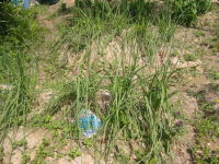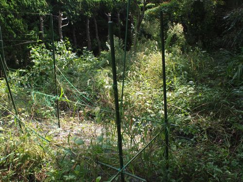 | 10日4日 9時15分〜10時55分 十六ささげや豆類抜き取り 跡に石灰撒き 木の枝が繁って日当たりが悪くなったので枝を一本切ったが まだ不十分 ミニトマト少々収穫 まだ残っている ナス花盛り ブロッコリーの苗を5本植えた 同じところに家の苗床で育苗したものを植えた ラッキョウ芽が出てきた |