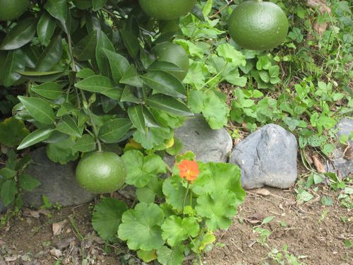 | 12月27日 サンリョウへ花を買いに行く途中に寄って 甘夏とユズを少々づつ収穫 後は下の写真の様に順調に育っている |
