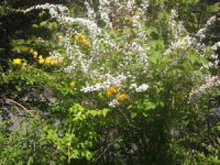 | 5月7日 農楽会の役員会の帰りにトマトの苗を三本植えてきた 5月1日 10時〜12時30分 草取り1時間 エンドウの支柱たて 花になったブロッコリー取り去り 跡にトマト・きゅうりの苗植え サニーレタス半分収穫 甘夏20個最終収穫 枝の先端にいっぱい花が咲いている 枝を切ったので日当たりがよくなったのか 満開のシャガだが 数が少なくなった じゃかいも30センチほどになっている |