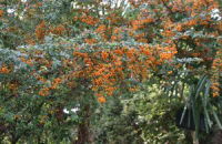 | 12月30日 正月用に黄と赤の千両とゆずと甘夏採取 スナップエンドウ50センチほどになっていた |