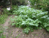 | 8月5日 早朝 数年前に先端を切ったのだが また伸びたので太い枝を4本切った 法面の草がまた伸びてきた インゲン・サツマイモ好調 ジャガイモは連作の害がでたのか良くない トマトはもう終わりか 日中は暑くて作業はできない |