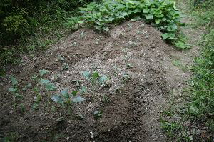 | 10月13日 農楽会の役員会の帰りに寄って 苗床で育てたカブの苗を植えた いろいろな木が繁り日当たりが悪くなった 畝直し |
