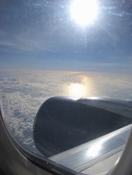 帰りは 定刻の16時10分出発 機窓から約20分にわたり空のマジックアワーを観ることができた この写真ではわからないが 満天の星も見えた