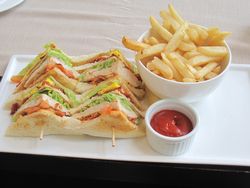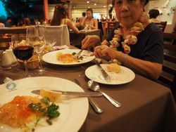 ② =ホテルの近くのレストランでボリュウムてたっぷりの夕食
