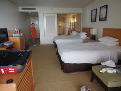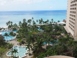 ③ =宿泊のハイアットリージェンシーグアムはタモン通りの中心にある 部屋は正面に海が見える8階 朝 プールサイド散策