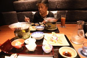 その中でひときわ存在感があるのは神木の大杉 昼食は境内のレストラン 霧島神宮駅へ戻るが